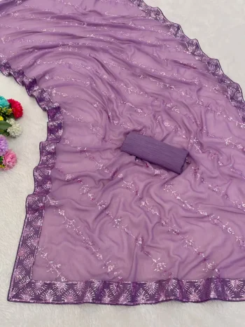 SAREE WITH UNSTITCHED BLOUSESKU: 82864-3 - MODERN GEORGETTE SILK SEQUENCE WORK ALL OVER WITH PIPING BORDER WORK SAREE WITH UNSTITCHED BLOUSE LAVENDER ₹789.00