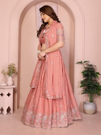 SIZE : 2.50 METERSKU: 80130-5 - ATTRACTIVE GEORGETTE EMBROIDERY WORK LEHENGA CHOLI WITH DUPATTA PEACH ₹1,944.00