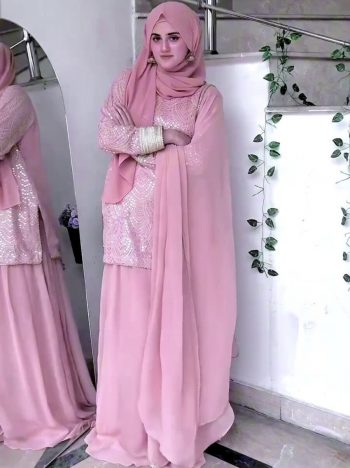 LENGTH : 2 METERSKU: 81389 - FANCY GEORGETTE THREAD WITH SEQUENCE WORK TOP PALAZZO WITH DUPATTA PINK ₹1,358.00