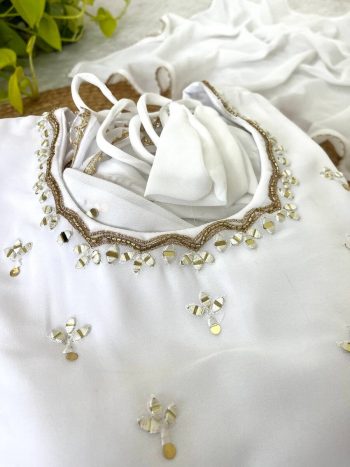 SIZE : S, M, L, XL, XXLSKU: 80539-1 - FANCY GEORGETTE HAND MIRROR EMBROIDERY WORK ANARKALI GOWN BOTTOM WITH DUPATTA WHITE ₹1,527.00