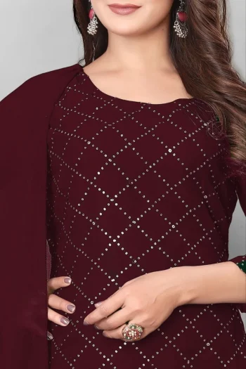 LENGTH : 46+ INCHSKU: 78100-2 - RICH LOOK GEORGETTE SEQUENCE WORK TOP BOTTOM WITH DUPATTA MAROON ₹786.00