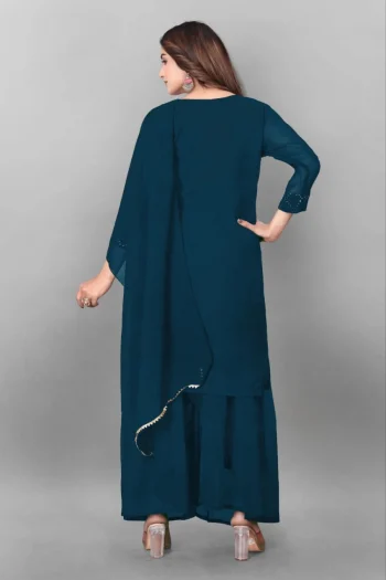 (FULLY STITCHED)SKU: 79545-4 - MODERN GEORGETTE EMBROIDERY WORK TOPM PALAZZO WITH DUPATTA TEAL ₹928.00