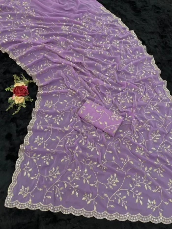 SAREE WITH UNSTITCHED BLOUSESKU: 82665-1 - DESIGNER STAR GEORGETTE EMBROIDERY SEQUENCE WORK SAREE WITH UNSTITCHED BLOUSE LAVENDER ₹1,078.00