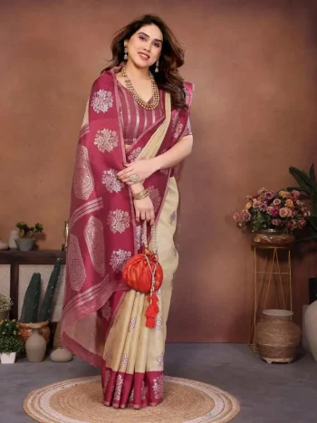 WORK : PURE PRINT WITH LAGDI PATTA AND TASSELSSKU: 76509-4 - DESIGNER LICHI SILK ZARI WEAVING WORK SAREE WITH UNSTITCHED BLOUSE RANI ₹554.00