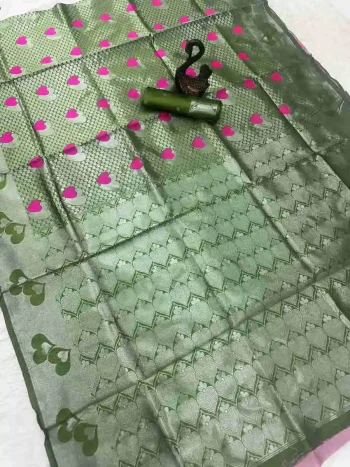 SAREE WITH UNSTITCHED BLOUSESKU: 81471-3 - DESIGNER BANARASI SILK FLOWERS AND MINA & ZARI WEAVING RICH PALLU WITH BORDER WORK SAREE WITH UNSTITCHED BLOUSE MEHNDI ₹642.00