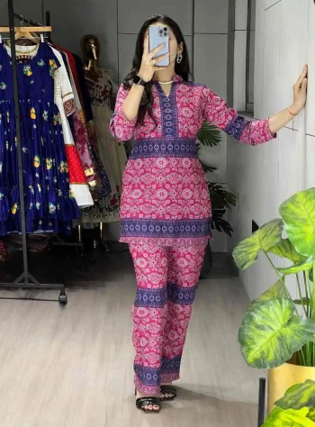 INNER : HEAVY RAYON FABRICSKU: 78866-3 - NEW ARRIVAL RAYON PRINTED CO-ORD SET BLUE AND PINK ₹693.00