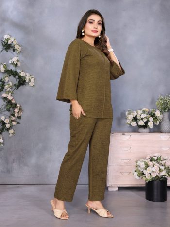 IN PACKAGE : (TOP BOTTOM FULLY STITCHED SET)SKU: 81224-1 - MODERN IMPORTED PLAIN CO-ORD SET MEHNDI ₹554.00