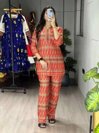 LENGTH : 38-39 INCH UP TO XXL FULL STITCHEDSKU: 79449 - NEW ARRIVAL RAYON PRINTED CO-ORD SET RED ₹693.00