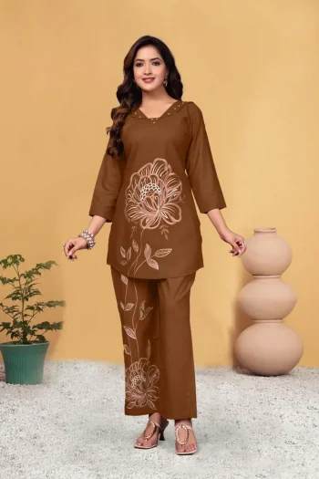 SIZE :- S, M, L, XL, XXL, XXXLSKU: 69156-4 - NEW ARRIVAL VETICAN EMBROIDERY WORK CO-ORD SET WINE ₹856.00