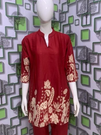 SIZE :- M ,L ,XL ,XXL ,3XLSKU: 77208-2 - RICH LOOK COTTON PRINT WORK CO- ORD SET WINE ₹1,071.00