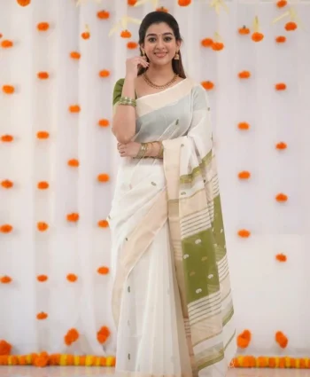 FANCY LINEN COTTON WEAVING WORK SAREE WITH UNSTITCHED BLOUSE GREEN ₹569.00