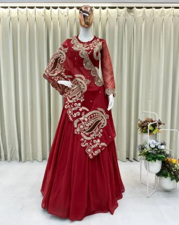 LENGTH :- 2 METERSKU: 80864-1 - MODERN GEORGETTE EMBROIDERY WORK SHRUG LEHENGA WITH DUPATTA PURPLE ₹1,358.00