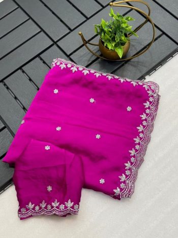 SAREE WITH UNSTITCHED BLOUSESKU: 73544-1 - ATTRACTIVE ORGANZA SILK EMBROIDERY ZARI SEQUENCE WORK SAREE WITH UNSTITCHED BLOUSE SKY ₹1,529.00
