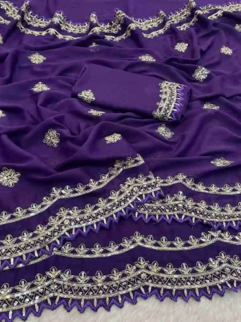 SAREE WITH UNSTITCHED BLOUSESKU: 78722-1 - DESIGNER GEORGETTE SILK SEQUENCE THREAD EMBROIEDRY WORK SAREE WITH UNSTITCHED BLOUSE PURPLE ₹1,022.00