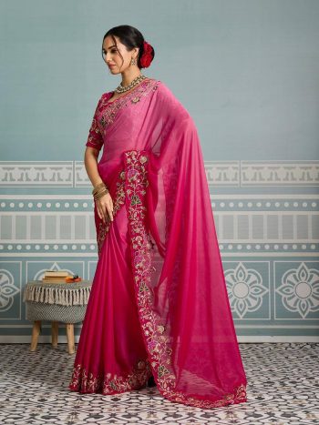 5.5 METER SAREE WITH UNSTITCHED BLOUSESKU: 74670-1 - RICH LOOK CHINON SILK EMBROIDERY WORK SAREE WITH UNSTITCHED BLOUSE BABY PIBK ₹1,389.00