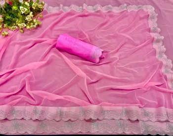 SAREE WITH UNSTITCHED BLOUSESKU: 82444-3 - MODERN GEORGETTE HOTFIX WORK SAREE WITH UNSTITCHED BLOUSE BABY PINK ₹499.00