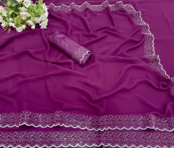 5.5 METER SAREE WITH 0.80 METER UNSTITCHED BLOUSESKU: 65261-3 - MODERN GEORGETTE HOTFIX WORK SAREE WITH UNSTITCHED BLOUSE WINE ₹499.00