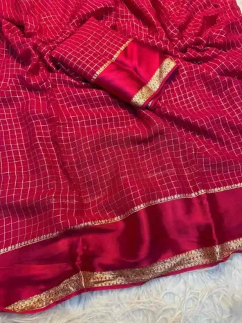 SAREE WITH UNSTITCHED BLOUSESKU: 81106-4 - NEW ARRIVAL GEORGETTE CHECKS WEAVING AND STUNNING SATIN PATTA BORDER WORK SAREE WITH UNSTITCHED BLOUSE RANI ₹856.00