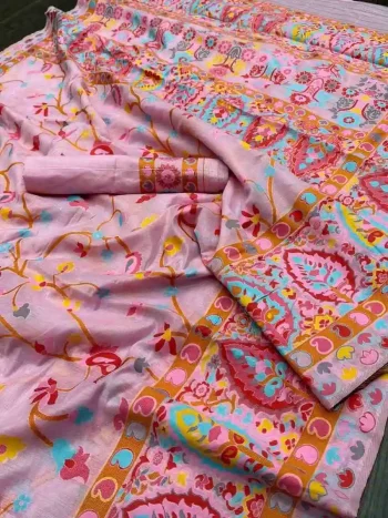 SAREE WITH UNSTITCHED BLOUSESKU: 72500 - MODERN KASHMIRI PASMINA THREAD WEAVING PURE ZARI WEAVING WORK SAREE WITH UNSTITCHED BLOUSE PINK ₹1,428.00