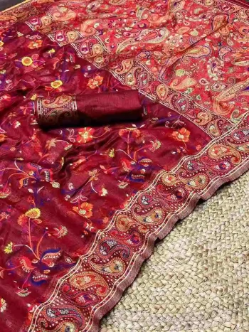 SAREE WITH UNSTITCHED BLOUSESKU: 72337-7 - MODERN KASHMIRI PASMINA THREAD WEAVING PURE ZARI WEAVING WORK SAREE WITH UNSTITCHED BLOUSE MAROON ₹1,428.00