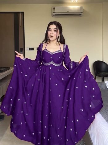 DUPATTA FABRIC : HEAVY SOFT NET WITH EMBROIDERY 5M SEQUENCE WORK WITH FULL-STITCHSKU: 72551-2 - FASHIONABLE GEORGETTE SEQUENCE EMBROIDERY WORK GOWN BOTTOM WITH DUPATTA PURPLE ₹1,805.00