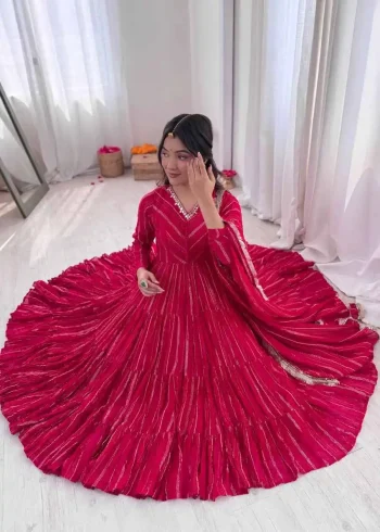GOWN LENGTH :- 48-49 INCHSKU: 73796 - FANCY VISCOSE JACQUARD WORK GOWN BOTTOM WITH DUPATTA PINK ₹1,644.00