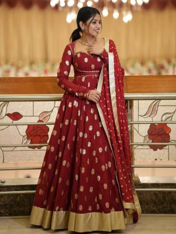 PACKAGE CONTAIN :- GOWN WITH DUPATTASKU: 75966-2 - LATEST FAUX BLOOMING EMBROIDERY ZARI SEQUENCE WORK GOWN WITH DUPATTA MAROON ₹1,848.00