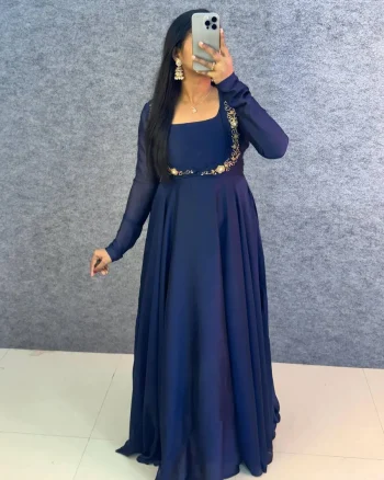 LENGTH :- 2.25 METERSKU: 76163 - MODERN RANGOLI SILK HANDWORK GOWN KOTI WITH DUPATTA NAVY BLUE ₹1,072.00