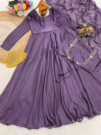 PACKAGE CONTAIN :- GOWN WITH DUPATTASKU: 76646-3 - DESIGNER BLOOMING VICHITRA EMBROIDERY ZARI AND SEQUENCE WORK GOWN WITH DUPATTA PURPLE ₹1,666.00