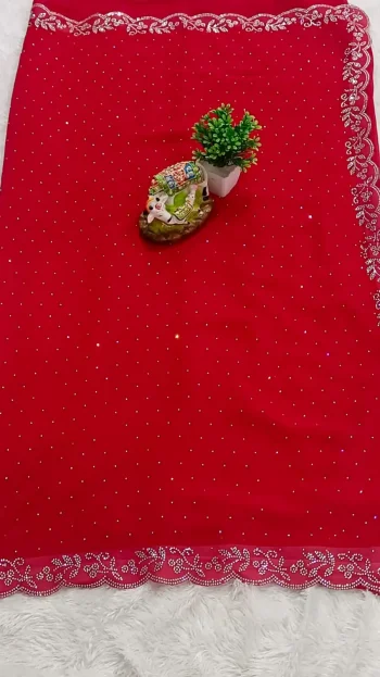 SAREE WITH UNSTITCHED BLOUSESKU: 81668-1 - LATEST GEORGETTE DIAMOND WORK SAREE WITH UNSTITCHED BLOUSE RED ₹1,142.00