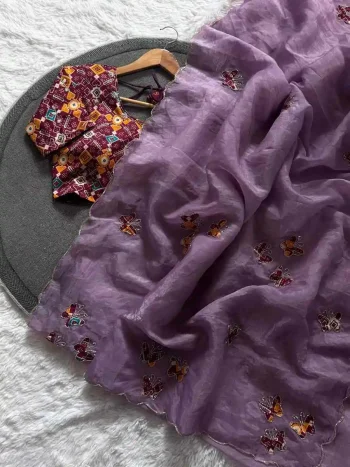 (SAREE WITH UNSTITCHED BLOUSE)SKU: 74632-5 - DESIGNER JIMMY CHOO LACE WITH HAND WORK SAREE WITH UNSTITCHED BLOUSE PURPLE ₹1,181.00