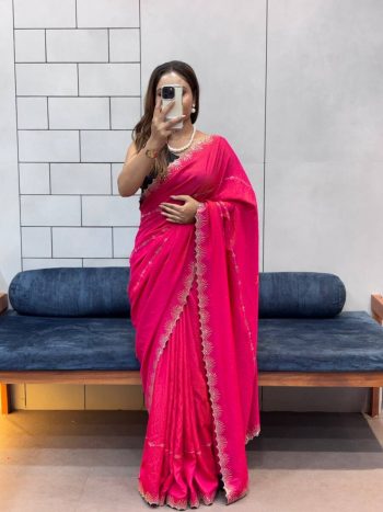 SAREE WITH UNSTITCHED BLOUSESKU: 83041 - DESIGNER SILK HANDWORK CUT DANA WORK CUT BORDER WORK SAREE WITH UNSTITCHED BLOUSE RANI ₹1,857.00