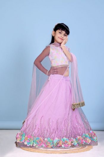 SIZE :- 3 YRS | 4 YRS | 5 YRS | 6 YRS | 7 YRS | 8 YRS | 9 YRS | 10 YRS | 11 YRS | 12 YRS | 13 YRS | 14 YRS | 15 YRS | (REFER TO SIZE CHART)SKU: 71551-3 - TRENDING TAFETA SILK JACQUARD WORK KID’S TOP WITH LEHENGA PURPLE ₹834.00