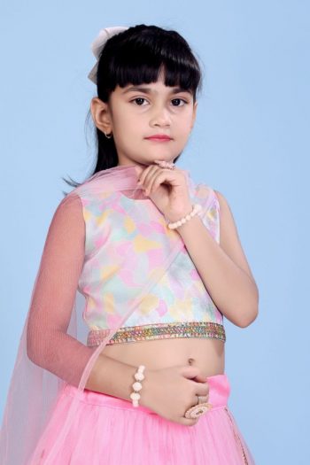 ALTERNATIVELY, YOU MAY MENTION THE DESIRED SIZES IN THE “ORDER NOTES” SECTION DURING CHECKOUTSKU: 80718-3 - FANCY NET SEQUENCE EMBROIDERY WORK KID’S LEHENGA CHOLI WITH DUPATTA PISTA ₹856.00