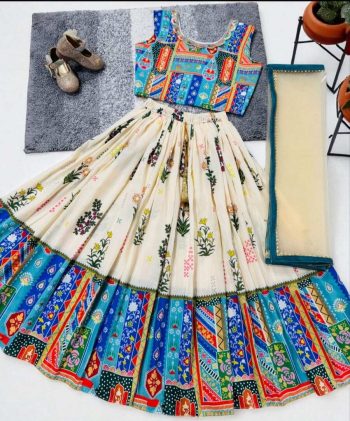 DUPATTA FABRIC : HEAVY CREEPSKU: 76150-2 - FANCY MUSLIN COTTON MUSLIN COTTON WORK KID’S LEHENGA CHOLI WITH DUPATTA SKY ₹971.00