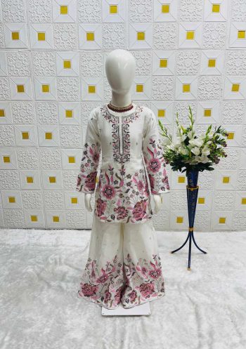 SIZE : 2 YRS | 3 YRS | 4 YRS | 5 YRS | 6 YRS | 7 YRS | 8 YRS | 9 YRS | 10 YRS | 11 YRS | 12 YRS | 13 YRS | 14 YRS | 15 YRS (REFER TO SIZE CHART)SKU: 75607 - MODERN CREPE EMBROIDERY WORK KID’S BLOUSE KOTI WITH PALAZZO SET RANI ₹886.00