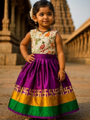 - TRENDING LICHI SILK JACQUARD WEAVING WORK KID’S LEHENGA CHOLI PURPLE ₹945.00