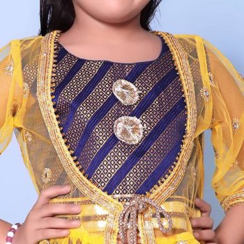 SKU: AG102-9 - DESIGNER COTTON JACQUARD WEAVING LACE BORDER WORK KID’S LEHENGA CHOLI WITH KOTI YELLOW ₹834.00