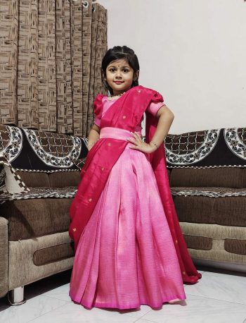 ALTERNATIVELY, YOU MAY MENTION THE DESIRED SIZES IN THE “ORDER NOTES” SECTION DURING CHECKOUTSKU: 82721-2 - LATEST SOFT SILK ZARI WEAVING WORK KID’S LEHENGA CHOLI WITH DUPATTA PINK ₹1,179.00