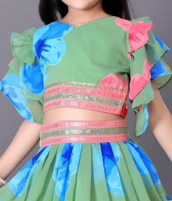 ALTERNATIVELY, YOU MAY MENTION THE DESIRED SIZES IN THE “ORDER NOTES” SECTION DURING CHECKOUTSKU: 79460-6 - RICH LOOK GEORGETTE FLORAL DESIGN & LACE BORDER WORK KID’S LEHENGA CHOLI WITH DUPATTA GREEN ₹799.00