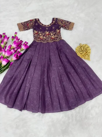 ALTERNATIVELY, YOU MAY MENTION THE DESIRED SIZES IN THE “ORDER NOTES” SECTION DURING CHECKOUTSKU: 80520-4 - FANCY GEORGETTE SILK EMBROIDERY AND HAND WORK KID’S GOWN PURPLE ₹1,215.00