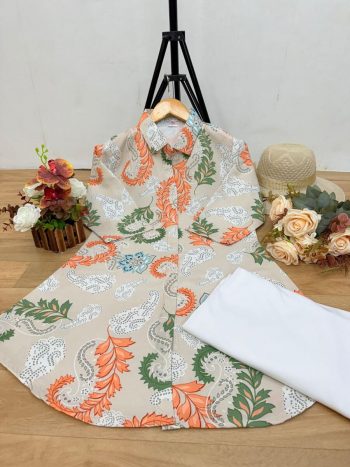 FABRIC : PURE RAYON COTTANSKU: 82905-2 - NEW ARRIVAL RAYON DIGITAL PRINT WORK KURTI WITH LYCRA PLAIN PALAZZO SET OFF WHITE ₹485.00