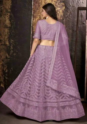 SIZE : 2.30 METERSKU: 63602-5 - DESIGNER NET CHAIN WORK LEHENGA CHOLI WITH DUPATTA PINK ₹786.00