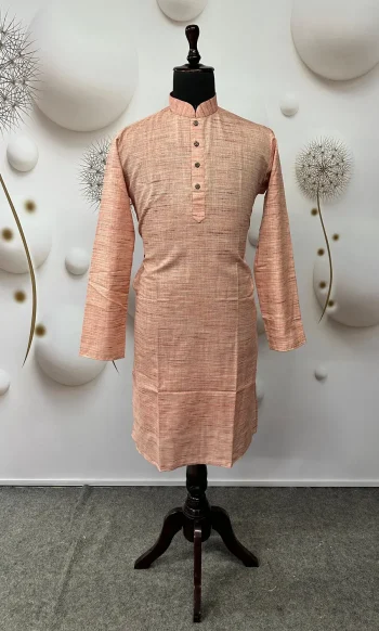 CONTAIN : MENS KURTA ,PAJAMASKU: 81797-1 - FANCY KHADI LINEN HANDWOVEN WORK MEN’S KURTA PAYJAMA PEACH ₹569.00