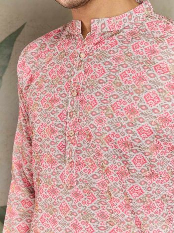 SIZE:- 38, 40, 42, 44SKU: 69118-3 - ATTRACTIVE COTTON SCHIFFLI CROCHET SEQUENCE WORK WITH DIGITAL PRINT MEN’S KURTA BABY PINK ₹499.00