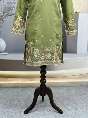 ( SIZE CHARTS ATTACHEDSKU: 62004 - FANCY MONO SILK EMBROIDERY SEQUENCE WORK MEN’S KURTA PAYJAMA PISTA ₹908.00