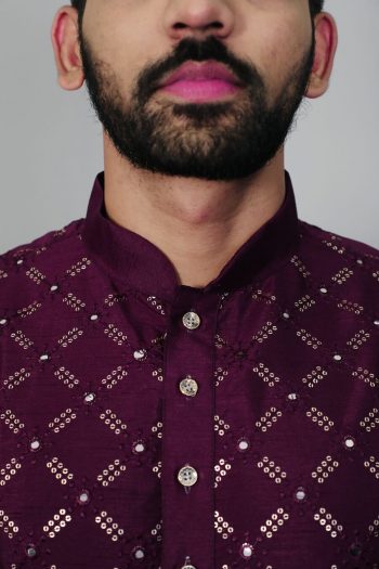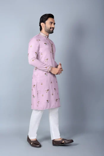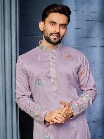 - FANCY SOFT SILK MULTI THREAD EMBROIDERY WORK MEN’S KURTA PAYJAMA LAVENDER ₹1,499.00