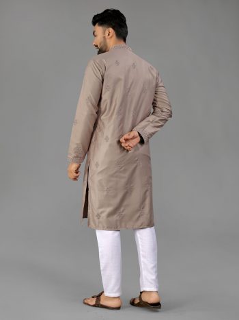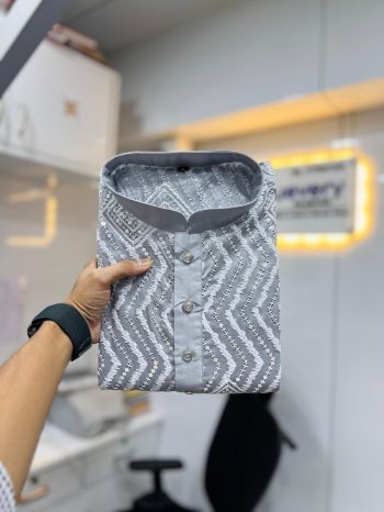 FABRIC : COTTONSKU: 78827-3 - MODERN RAYON THREAD SEQUENCE WORK MEN’S KURTA PAYJAMA GREY ₹741.00