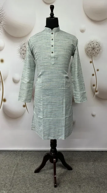 KURTA (FOR MEN) :- PURE COTTON SLUB STRIPE FANCY FABRIC WITH SILVER WEAVING LINING