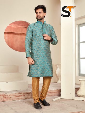 FABRIC : COTTONSKU: 79469-3 - DESIGNER JACQUARD PRINTED AND LACE WORK MEN’S KURTA PAYJAMA RAMA ₹1,169.00